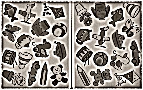 Da nach dem Mischen der Karten wieder neue Paare entstehen, auf denen ein anderer Gegenstand zu suchen ist, kann niemand die Konstellationen einfach auswändig lernen. Und allzu oft denkt man, der Gegenstand sei gefunden, doch in Wirklichkeit stimmen nur die Farben, nicht aber deren Verteilung.